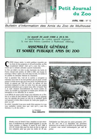 Le Petit Journal du Zoo Avril 1988 - No 13.