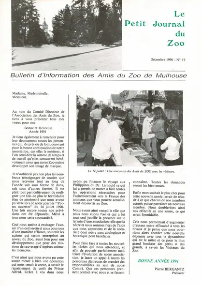Le Petit Journal du Zoo Decembre 1990 - No 19.