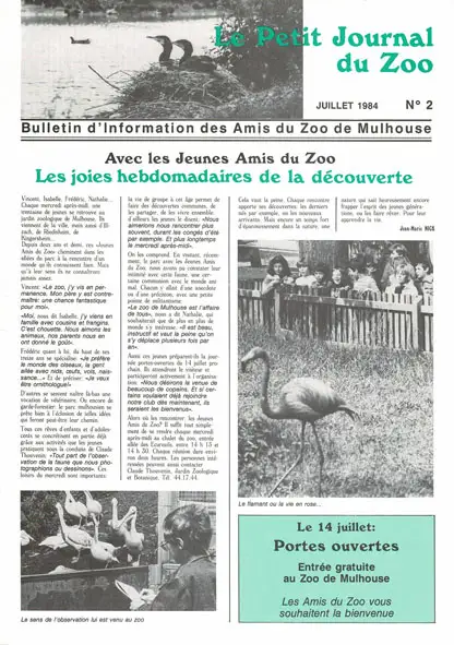 Le Petit Journal du Zoo Juillet 1984 - No 2.