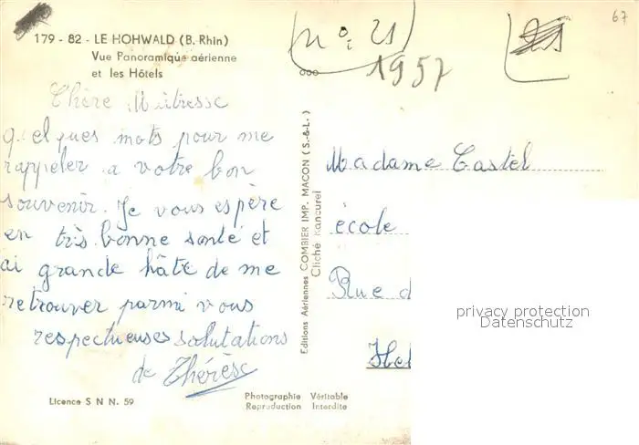 Le_Hohwald et les Hôtels vue aérienne Le_Hohwald postalisch nicht gelaufen 1921-1965 Erhaltung siehe scans [FriedD77] Frierer
