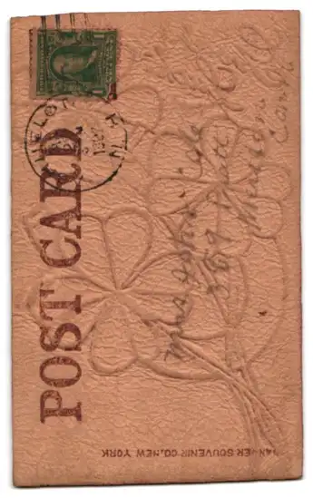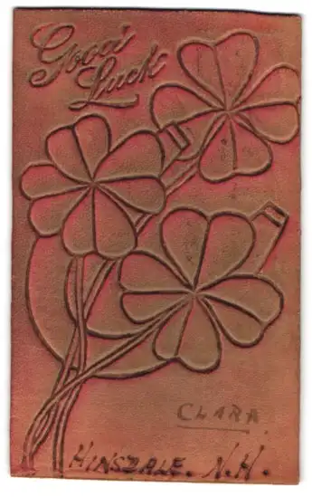 Leder-AK Glückwunsch mit Klee und Hufeisen