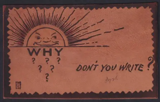 Leder-AK Why don`t you write?, Aufgehende Sonne weckt Schreibfaulen