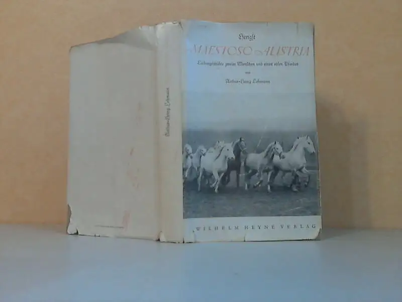das Buch stammt aus einer Haushaltsauflösung, stark gebräunt und fleckig, der Umschlag ist zwar vorhanden jedoch stark fleckig, kaputt, Mit dem „Hengst Maestoso Austria" legt der Verlag ein Buch von einem Pferde und zwei Liebenden vor, ein Buch, wie es erfrischender, reiner, kreatürlicher und bukolischer nicht gedacht werden kann Im Mittelgrunde dieses schönen und erfrischend männlichen Buches sehen wir ein stolzes Pferd: den Lipizzanerhengst Maestoso Austria, einen Schimmel edelster Rasse, von fast menschlicher Klugheit und makelloser Schönheit. Er hat schicksalhaft zwei Menschen zusammengeführt: den „Unheiligen Georg", einen abgebauten KavallerieofFizier, dem nichts blieb als seine Liebe zu den „Rössem", der aber vital, lebensfroh, kämeradschaftlich und stark in seiner Lebensliebe geblieben ist, und die „Ungarische", eine verarmte, aber durch eigenen Fleiß wieder zu Wohlstand gekommene ungarische Adlige. Wir finden diese beiden zur Zeit der Geschichte in den österreichischen Bergen, in der Heimat des Mannes. Und während sie ihrer Liebe zu dem Pferde und ihrer eigenen frohgemut leben, erzählen sie sich gegenseitig vom Glück ihrer Begegnung und damit uns die Geschichte des Pferdes und die ihrer Liebe. ... (über das Buch) Beschreibung vom Antiquariat Ardelt 3i2a Antiquariat Ardelt