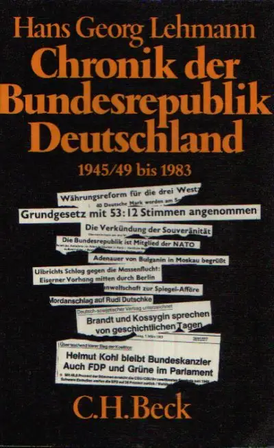 Lehmann, Hans Georg; Chronik der Bundesrepublik Deutschland 1945/49 bis 1983; Fläche und Bevölkerung in der Bundesrepublik Deutschland; Bundestagswahlen 1949- 1983; Bundespräsident und ihre Wahl; Präsidenten des Bundesrates; Bundestagspräsidenten; Kabinettslisten 1949- 1983; Präsidenten und Vizepräsidenten des Bundesverfassungsgerichts; Ausgewählte Bibliographie; Namenregister; Der Autor; Politik