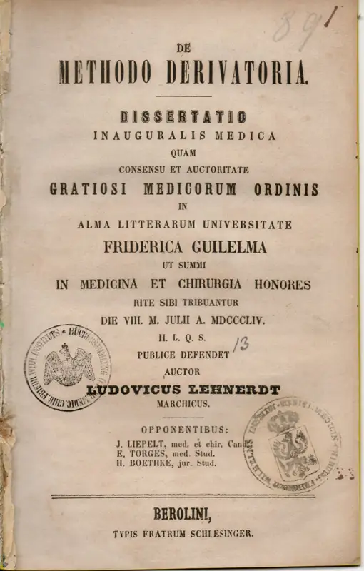 Lehnerdt, Ludwig: De methodo derivatoria (Über die ableitende Methode). Dissertation.