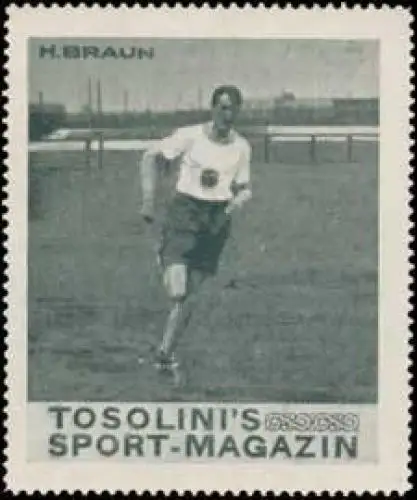 H. Braun, Tosolinis Sport-Magazin Serie, Größe/Zustand: 6x5 , guter Zustand, Original alte Reklamemarke die seinerzeit für die Werbung benutzt wurde