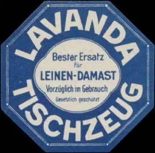Lavanda Tischzeug, bester Ersatz für Leinen-Damast, Größe/Zustand: 4x4 , guter Zustand, Original alte Reklamemarke die seinerzeit für die Werbung benutzt wurde