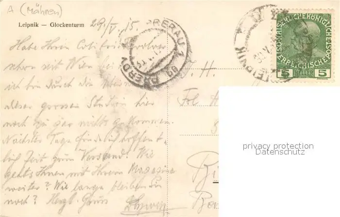 Leipnik_Tschechien Glockenturm Leipnik Tschechien postalisch gelaufen 1915 Erhaltung siehe scans [KathaD81] Kathoren