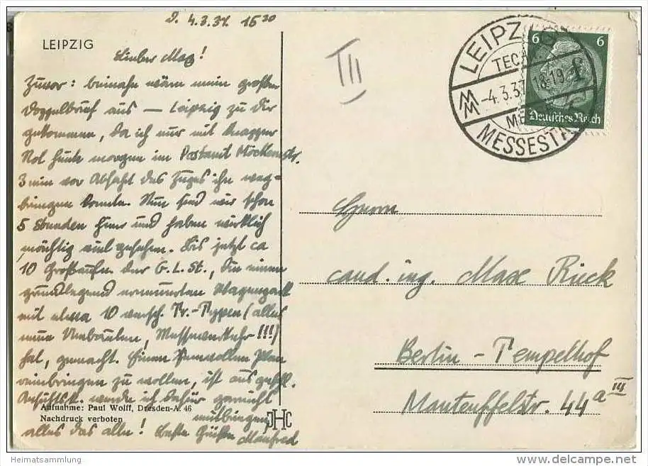 Leipzig - Am Augustusplatz - Strassenbahn - Verlag Paul Wolff Dresden (E35913) gel. 1937