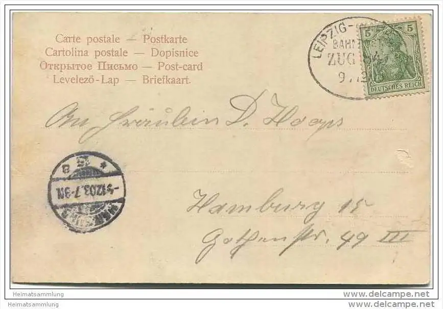 Leipzig - Augustusplatz - Verlag Dr. Trenkler Co. Leipzig - Bahnpoststempel Zug 84 (E6387) gel. 1903