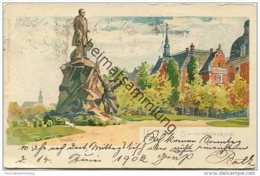 Leipzig - Bismarckdenkmal - Flaggenstempel - Verlag Gebr. Gerhardt Leipzig Nr. 1011 - Gebrauchsspuren (E13436) gel. 1902