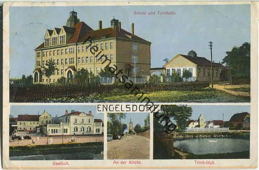 Leipzig - Engelsdorf - Schule - Turnhalle - Gasthof - Feldpost - Eckknick oben rechts (G42796) gel. 1914