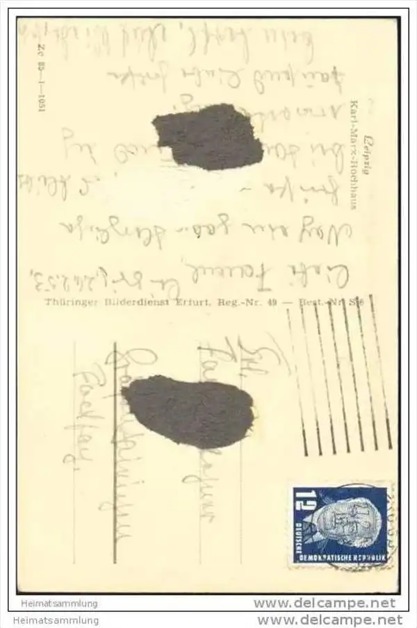Leipzig - Karl-Marx-Hochhaus - Foto-AK - Thüringer Bilderdienst Erfurt - Eckknick unten links - rückseitig Klebestellen - Papierschaden (G20313) gel. 1953