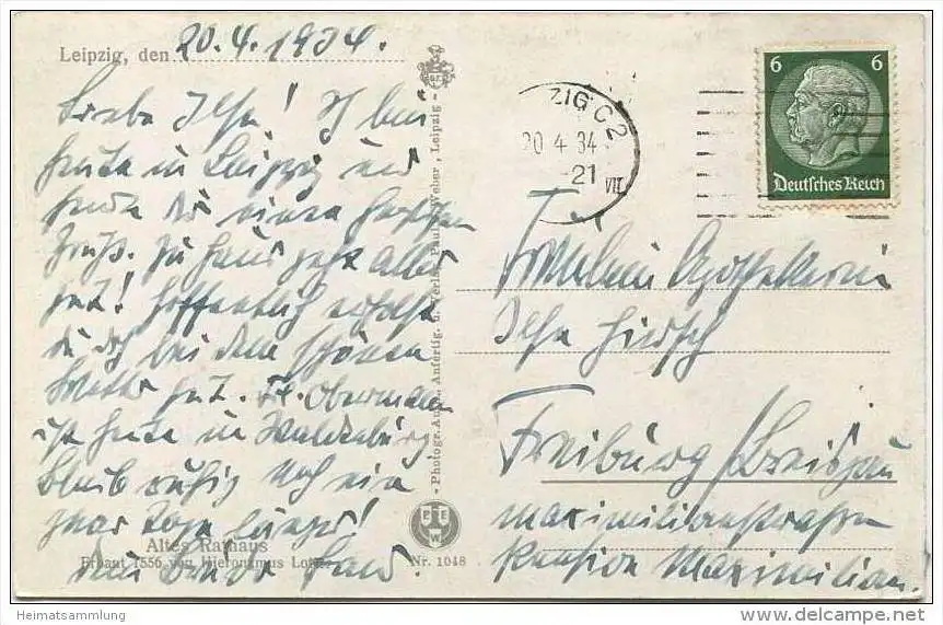 Leipzig - Markt mit Altem Rathaus - Verlag Paul Weber Leipzig (E12496) gel. 1934