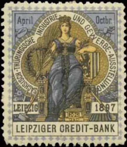 Sächsisch-Thüringische Industrie- und Gewerbe-Ausstellung, Leipzig, Größe/Zustand: 4x3 , beschädigt, Original alte Reklamemarke die seinerzeit für die Werbung benutzt wurde