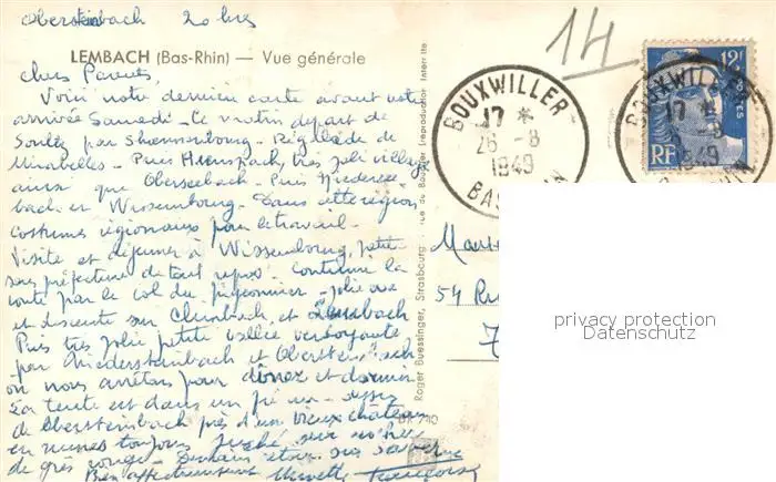 Lembach_Bas_Rhin_Elsass Vue générale Lembach_Bas_Rhin_Elsass postalisch gelaufen 1949 Erhaltung siehe scans [FriedD77] Frierer