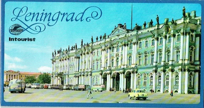 sehr guter Zustand, geringe Gebrauchs- und Alterungsspuren, Prospekt (Poster) in Finnischer Sprache, heute St. Petersburg in Russland, Papier, ca. 21,5 x 11,5 (aufgeklappt ca. 43,5 x 57), 20 Seiten mit 17 Bildern und 1 Stadtplan