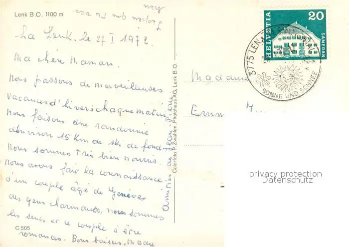 Lenk_Simmental Wintersportplatz Berner Alpen Lenk Simmental postalisch gelaufen 1972 Erhaltung siehe scans [FriedD77] Frierer