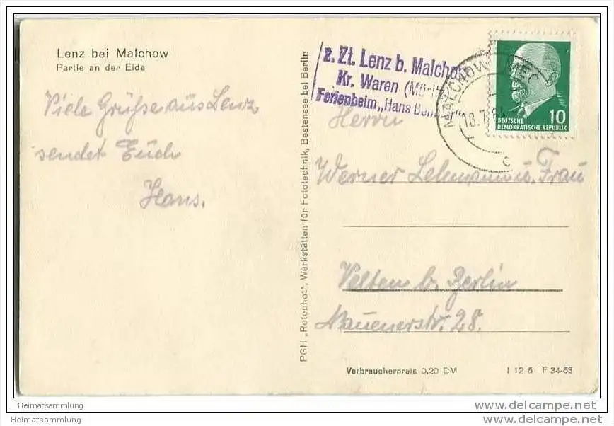 Lenz bei Malchow - Foto-AK - Eide (G23717) gel. 1959