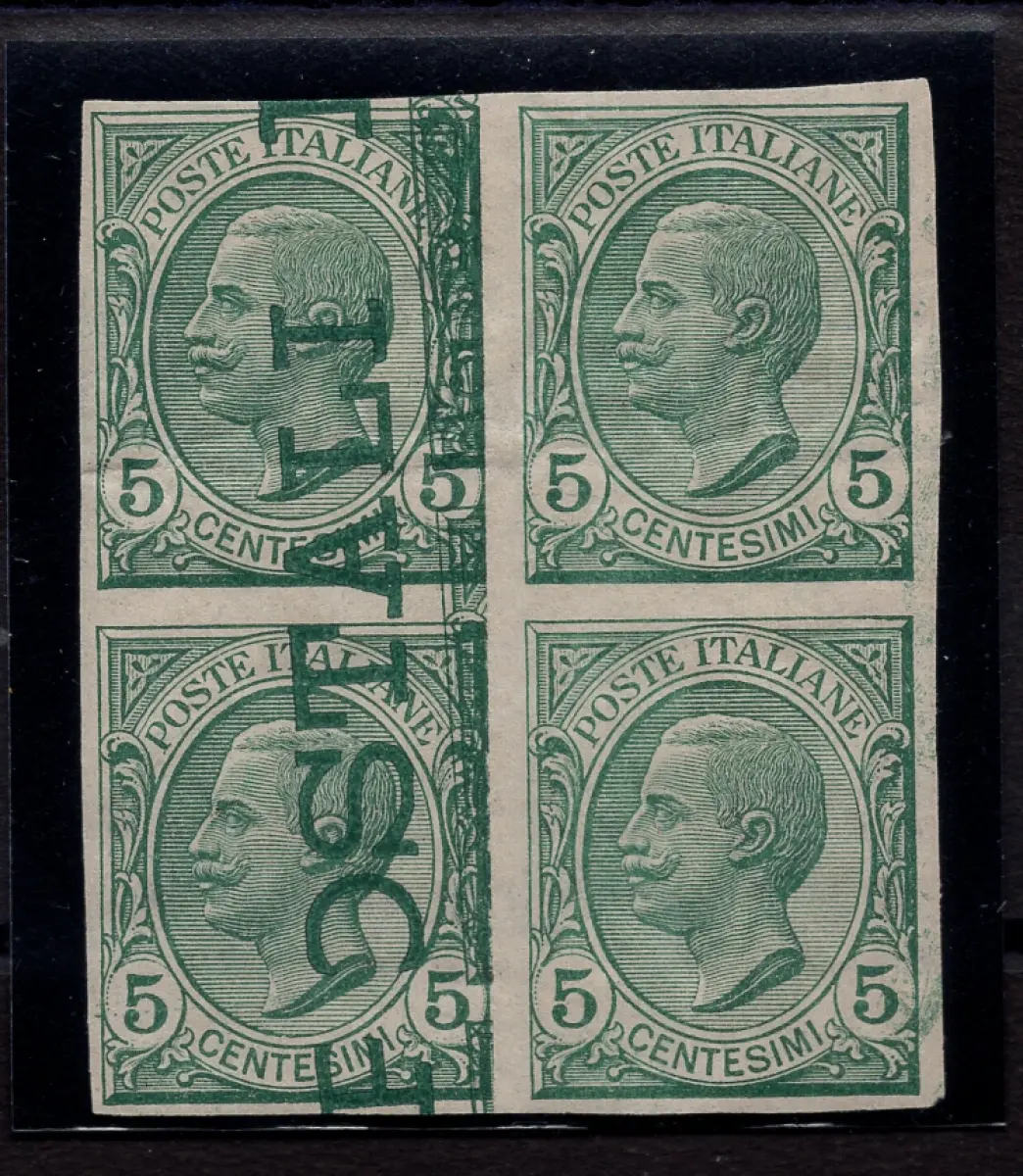 MNH - Vollgummi - Löwen Cent. 5 n. 81eac Viertel ungezähnt, die Exemplare links mit Randbeschriftungen über dem Briefmarkendesign, neuer perfekter Vollgummi - Ungewöhnlich - Kat. euro 750 Cod. 3344/WEB