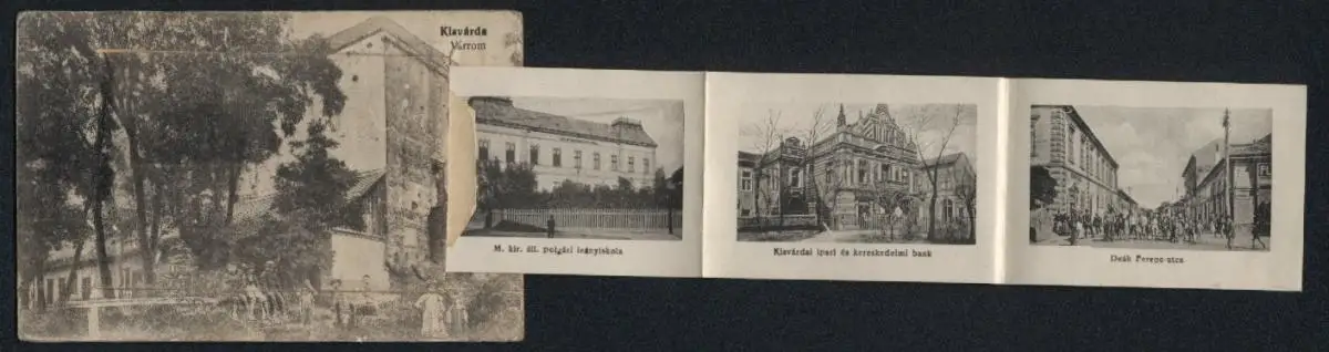 Leporello-AK Kisvárda, Varrom, Izr. templom, Piacrészlet, Synagoge