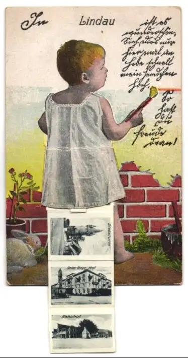 Leporello-AK Lindau / Bodensee, Ansichten unterm Hemdchen, Hotel Bayr. Hof, Hafen, Diebsthurm