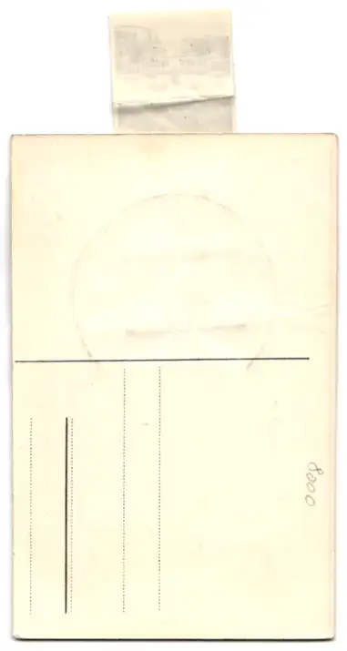 Personenbezogene Daten auf der Rückseite der Karte wurden durch blauen Textmarker unkenntlich gemacht. Die blauen Stellen sind auf die Vorderseite durchgeweicht und wirken sich negativ auf das Postkartenfoto aus