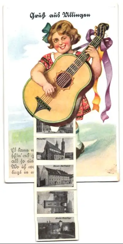 Leporello-AK Villingen, Bahnhofanlagen, Niede Strasse, Romäusturm, Münster, Oberes Tor