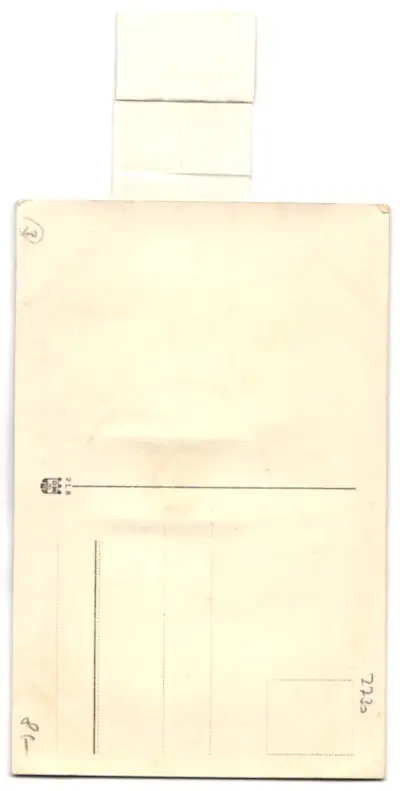 Personenbezogene Daten auf der Rückseite der Karte wurden durch blauen Textmarker unkenntlich gemacht. Die blauen Stellen sind auf die Vorderseite durchgeweicht und wirken sich negativ auf das Postkartenfoto aus