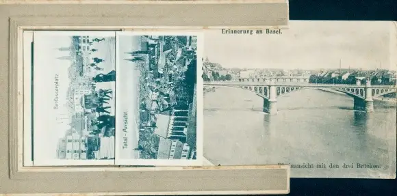 Leporello Ak Basel Bâle Stadt Schweiz, Rheinansicht mit den drei Brücken