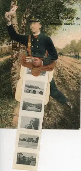 Leporello Ak Briefträger, Post, Brücke, Straße, Birken