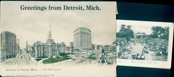 Leporello Ak Detroit Michigan USA, City Hall-Square, Bandkonzert, Belle Isle