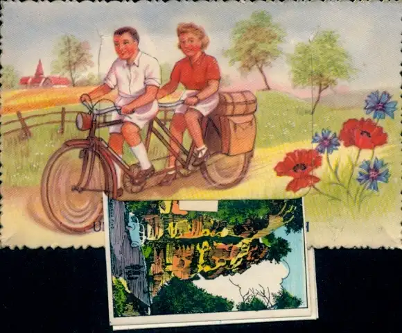 Leporello Ak Echternach Luxemburg, Felsen, Tandem