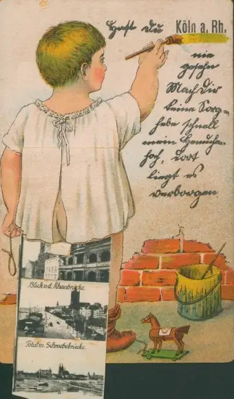 Leporello Ak Köln am Rhein, Rheinbrücke, Totalansicht, Schwebebrücke