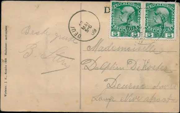 Zustand, siehe Scan, gelaufen, 1909 - ca 17 cm X 9 cm