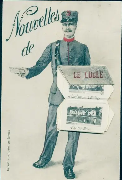 Leporello Ak Le Locle Kt. Neuenburg, Briefträger, Fabrique, Villa