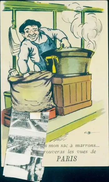 Leporello Ak Paris, Eiffelturm, Maronenverkäufer, Stadtansichten