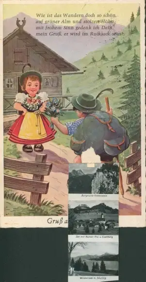 Leporello Ak Weißensee Füssen im Ostallgäu, Burgruine, Panorama, Berghütte, Wanderer