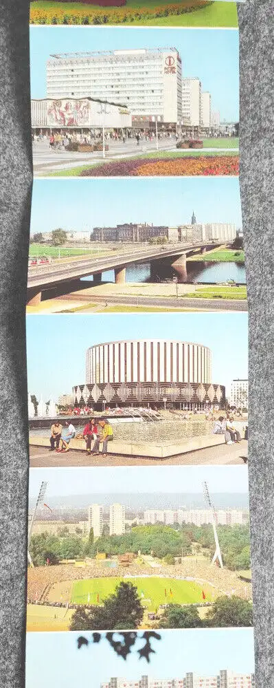Originale Bildermappe "Dresden". Mappe: 10,5 x 7,5 cm, Inhalt: 11 Bilder. Erhaltung: Verpackung hat altersgerechte Gebrauchsspuren, alles weitere siehe bitte Fotos.
