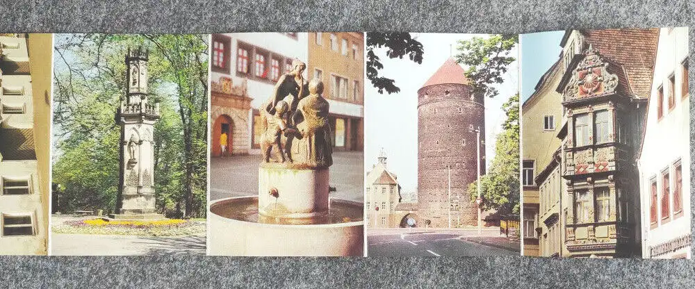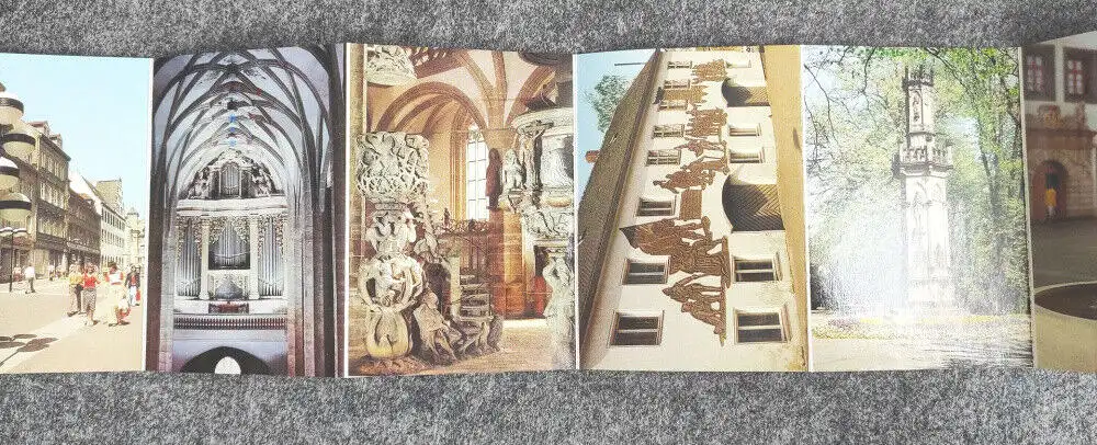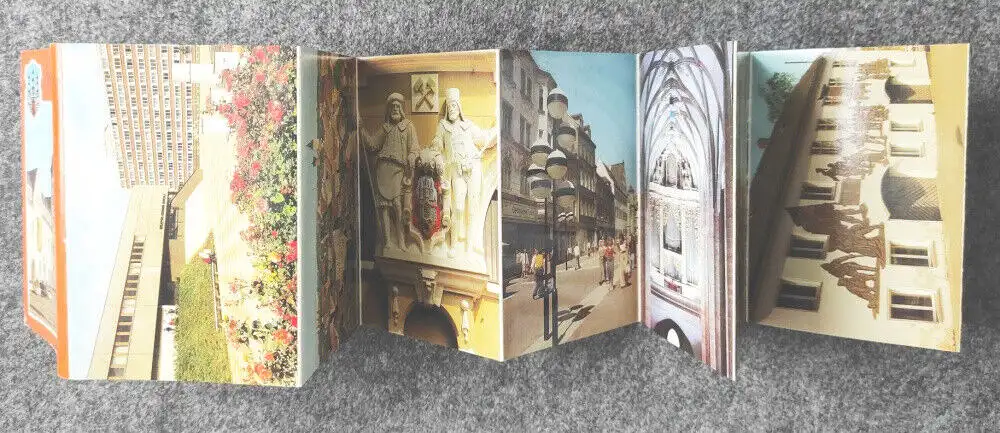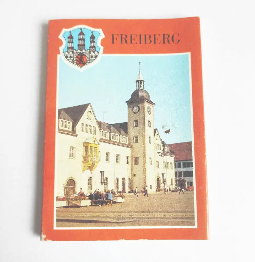 Originale Bildermappe "Freiberg". Mappe: 10,5 x 7,5 cm, Inhalt: 10 Bilder. Erhaltung: Verpackung hat altersgerechte Gebrauchsspuren, alles weitere siehe bitte Fotos.