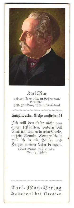 Lesezeichen Radebeul, Karl May Verlag, Portrait Karl May