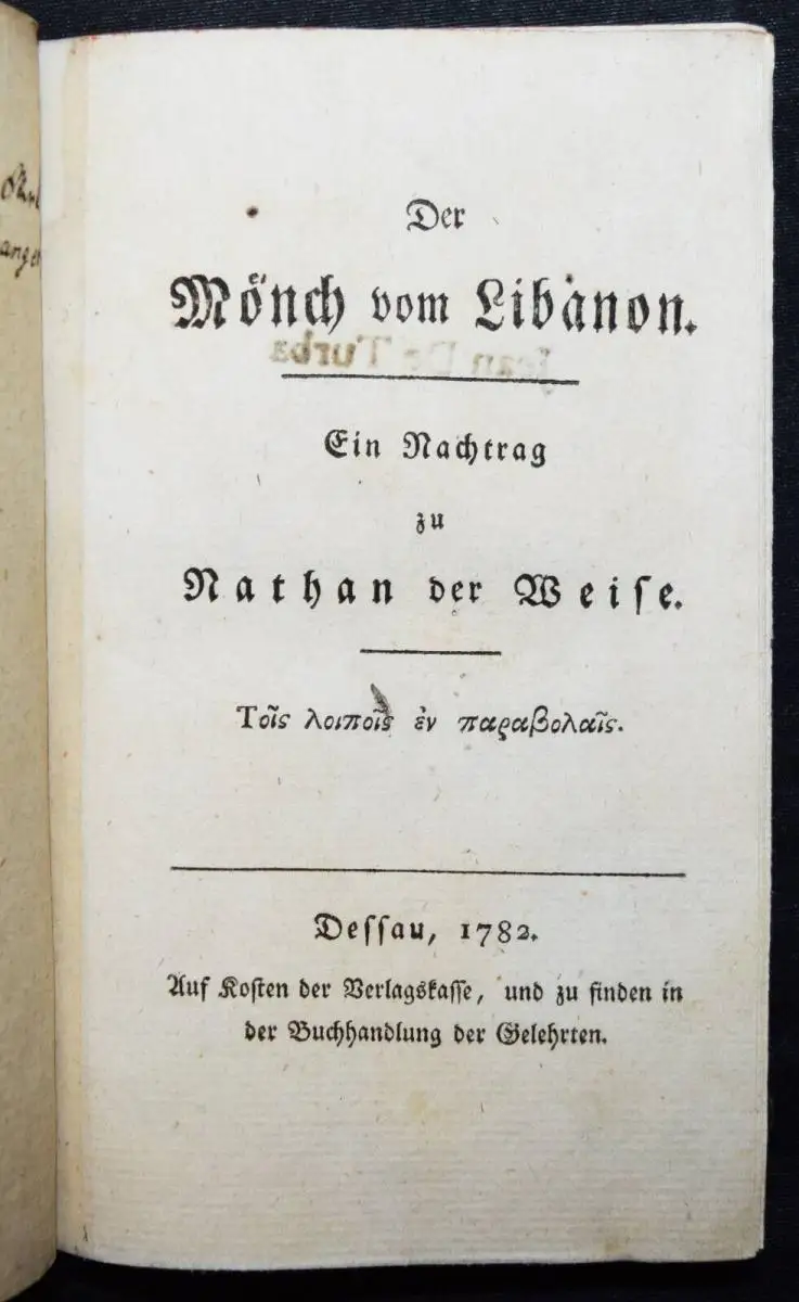 Der Mönch vom Libanon. Ein Nachtrag zu Nathan der Weise. Tois loipois