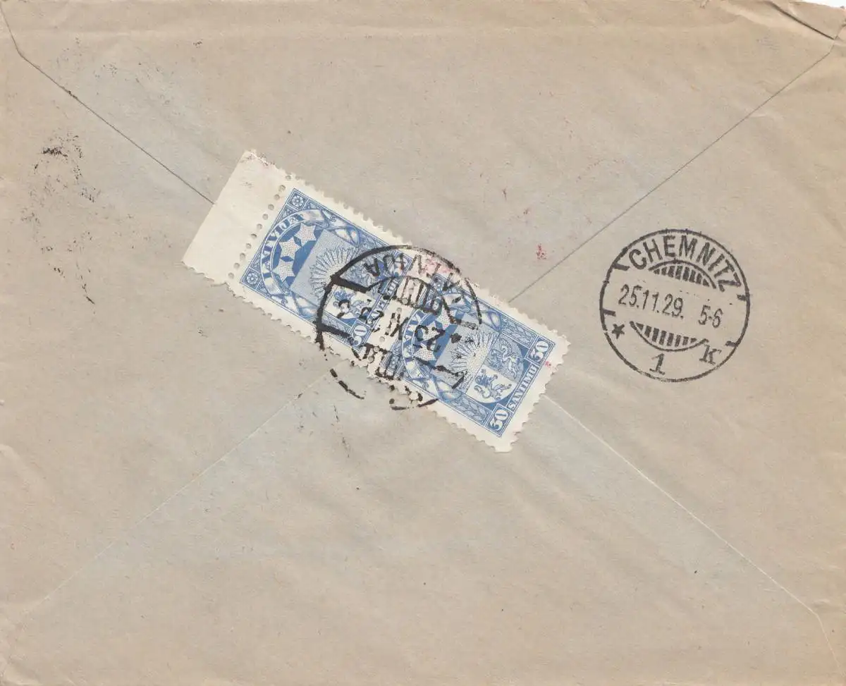 Lettland: 1929: Einschreiben riga nach Chemnitz
