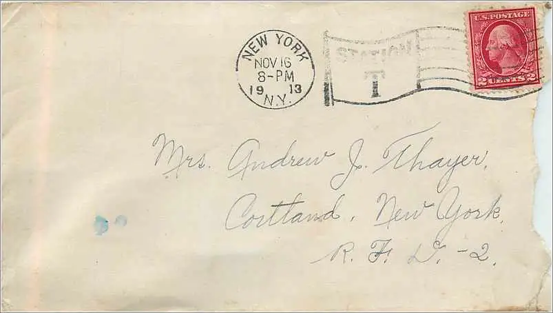 Lettre Cover Etats-Unis 2c New York 1913 for Cortland
