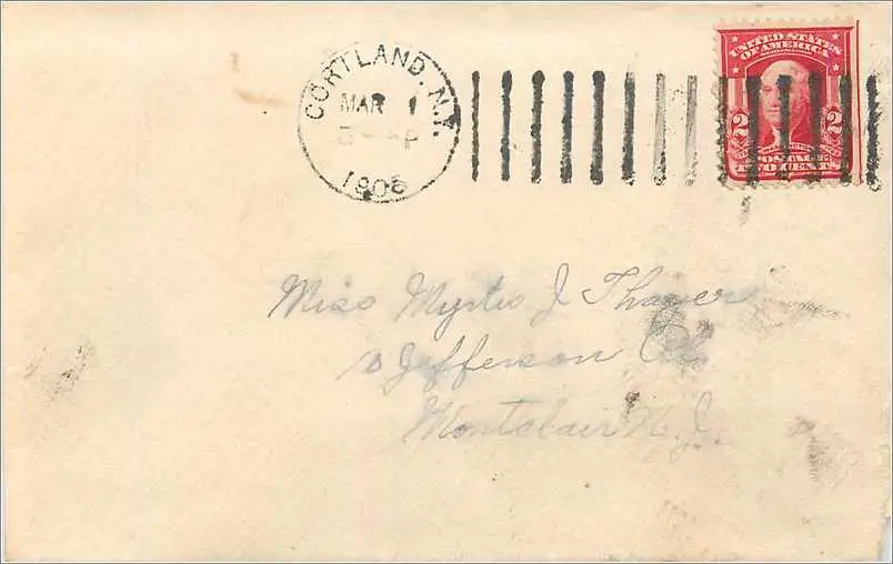 Lettre Cover Etats-Unis 2c on 1905 Cortland cover for Montlcair
