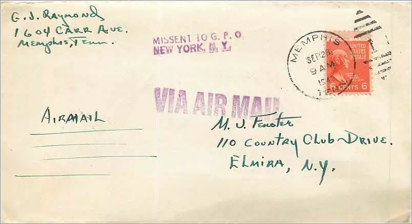 Lettre Cover Etats-Unis 3c Memphis Missent 1942 cover