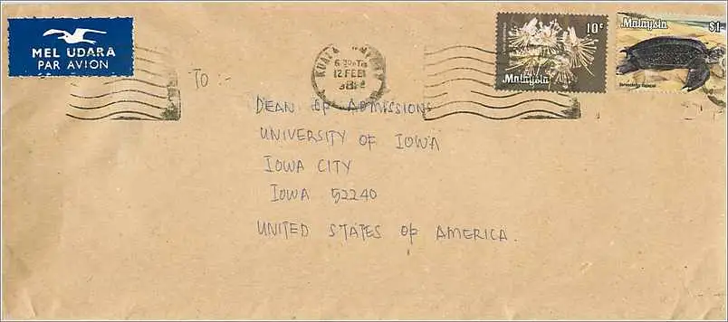 Lettre Cover Malaisie University Iowa Tortue Turtle