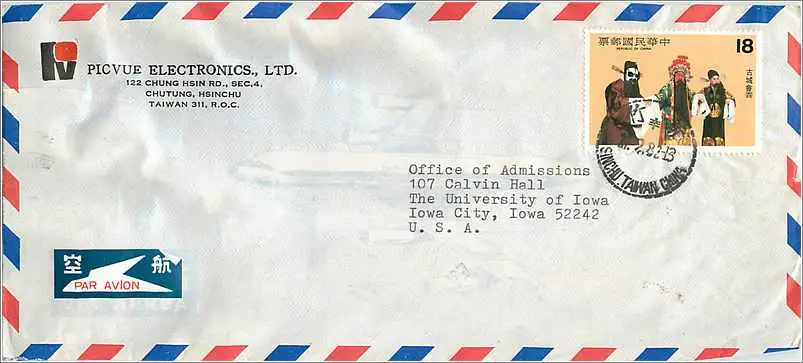 Lettre Cover for University of Iowa Chine
