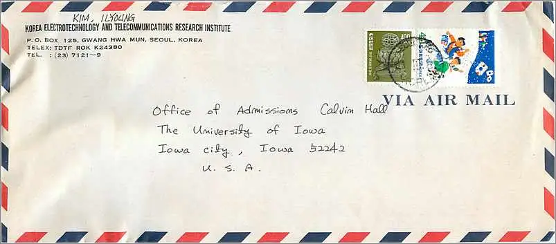 Lettre Cover for University of Iowa Coree