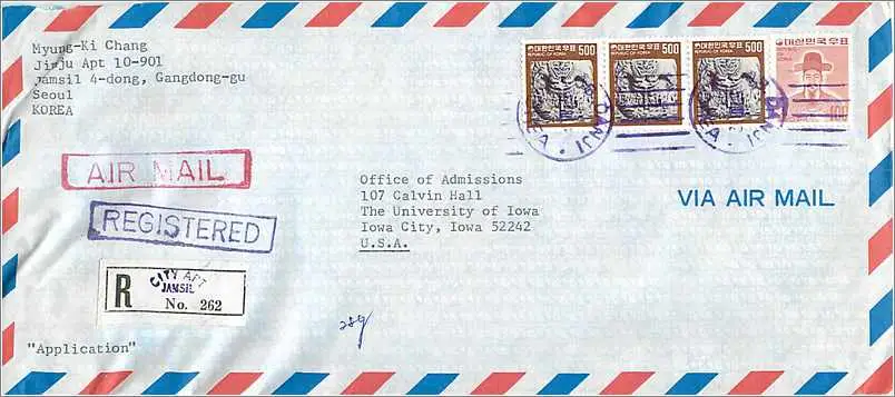 Lettre Cover for University of Iowa Coree